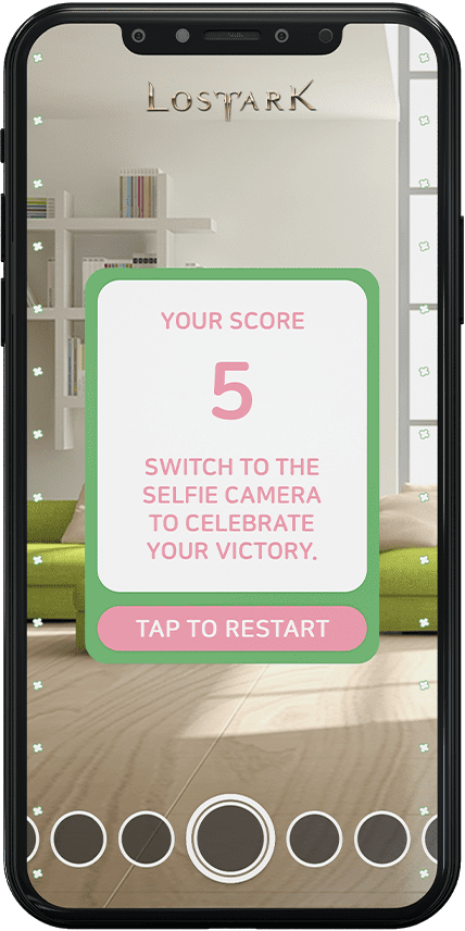 When the time runs out, the game is over and the user sees the score screen. On the score screen, it receives information about the number of “Mokoko” collected by the user and the rotation of the camera. If the user switches to the front camera, he will continue the experience on the front camera, but if he wants to continue the game, he can repeat the experience by clicking the restart button.